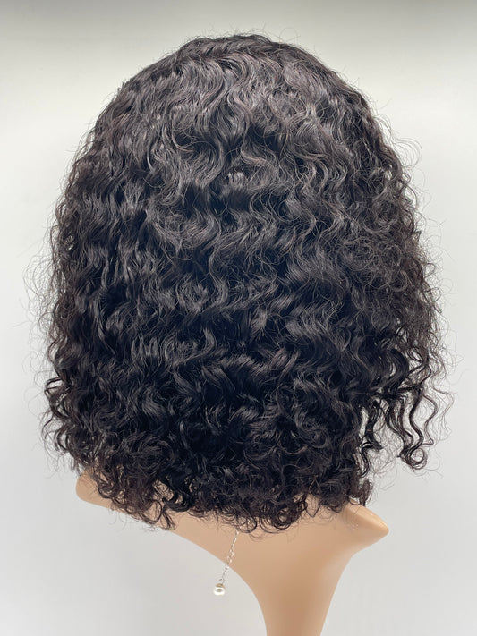 Lockige Front-Lace-Perücke, 180 % Dichte, Farbe Naturschwarz #1b