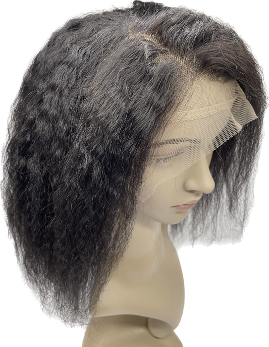 Kinky Straight Front-Lace Perücke 180 % Dichte, Farbe Naturschwarz #1b