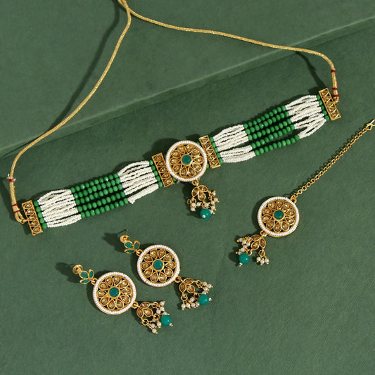 Ensemble de colliers en laiton Monalisa et pierre AD en métal noir de qualité supérieure de couleur or